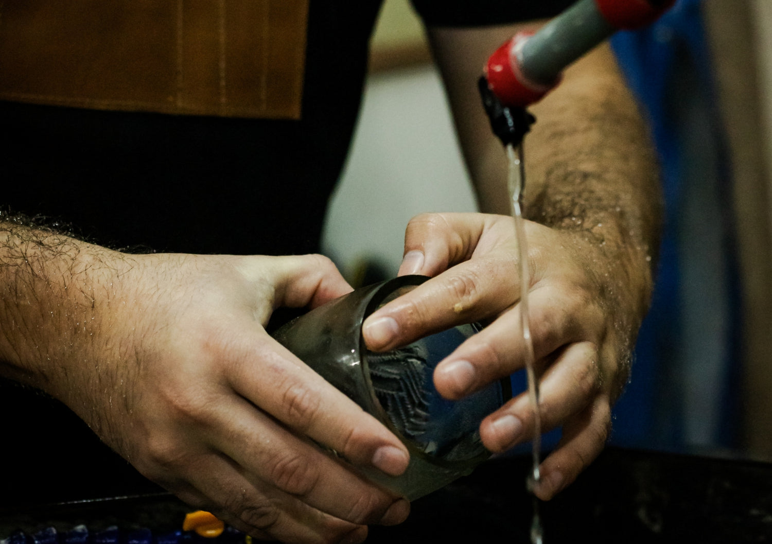 Al terminar de lijar el vaso, éste queda con restos de vidrio en su interior, por lo que es importante lavarlo nuevamente para que no quede ningún tipo de residuo.